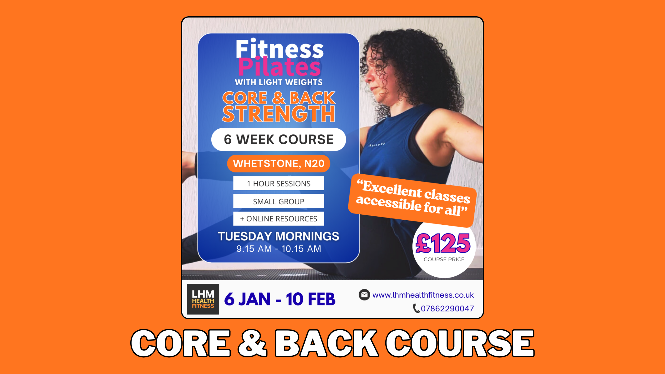 Fitness Pilates 7.45pm - build core and back strength, improve flexibility and mobility